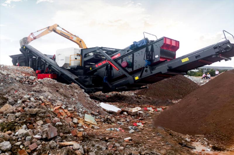 紅星移動式建筑垃圾處理站,采用多級組合模式,由顎式破碎機、反擊式破碎機、圓錐破碎機、振動篩分設備輸送帶等組合而成。移動式站點的行走方式有履帶式和輪胎式兩種,可以根據經常作業(yè)的路面做不同選擇。