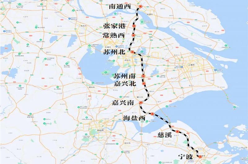 通蘇嘉甬鐵路正線運營長度310.113公里,其中新建線路300.638公里,設(shè)計時速350公里,全線估算投資1080.9億元。其中,浙江段新建線路長度165.914公里,跨海大橋長29.162公里。通蘇嘉甬鐵路設(shè)計時速350公里,預(yù)計工期5年。全線設(shè)南通西、張家港、常熟西、蘇州北、蘇州南、嘉善北、嘉興南、海鹽、慈溪、莊橋等10座車站。