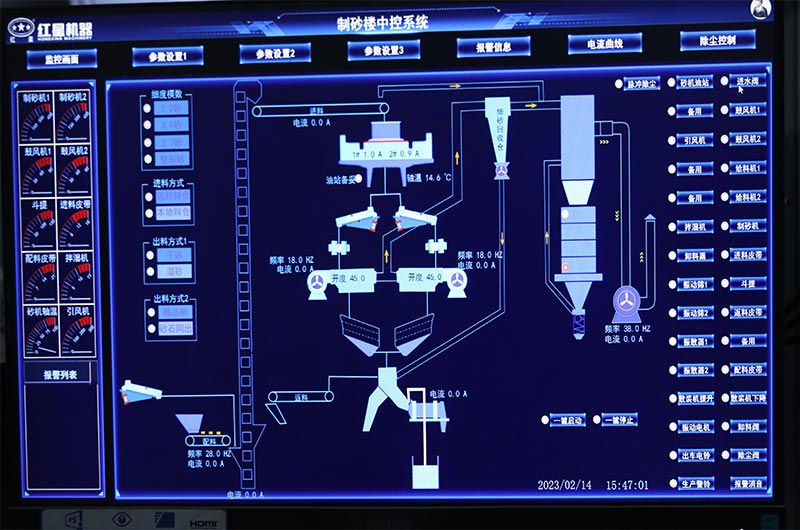 對于S7系列干法制砂樓來說,粉塵可以得到很好的控制,能實現(xiàn)綠色環(huán)保生產(chǎn)。并且該制砂樓采用智能中控系統(tǒng),可適時檢測砂石線生產(chǎn)動態(tài),及時掌控砂石出料情況等,智能化程度高,省時方便。